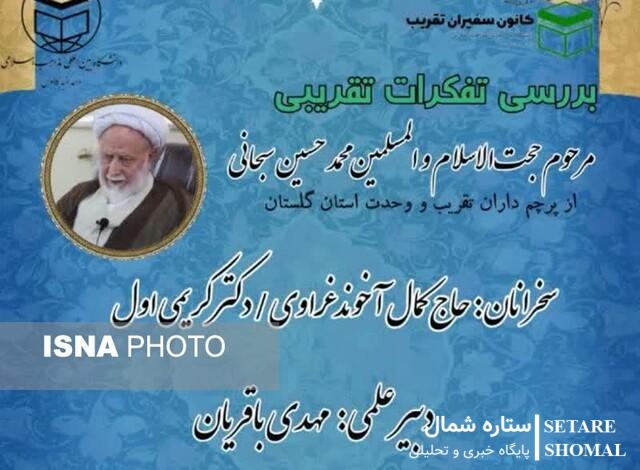به گزارش پایگاه خبری ستاره شمال دومین نشست از سلسله نشست های علمی بررسی تفکرات تقریبی علما و نخبگان استان گلستان با عنوان «بررسی علمی تفکرات تقریبی مرحوم حجت الاسلام و المسلمین محمدحسین سبحانی از پرچمداران تقریب و وحدت اسلامی استان گلستان» در دانشگاه گنبدکاووس برگزار میشود.