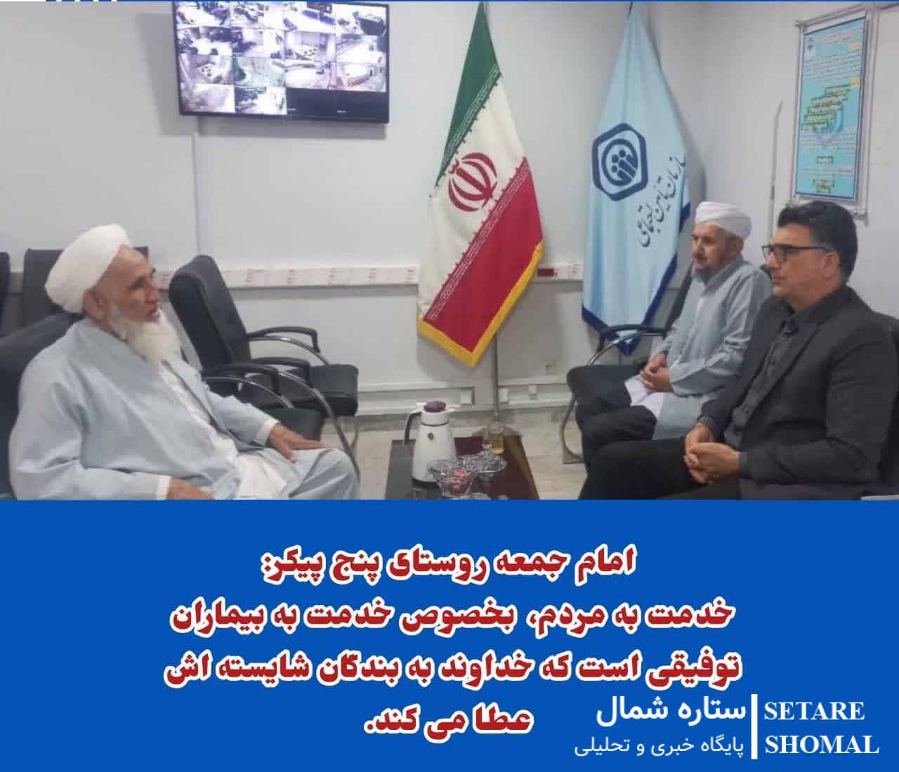 دیدار رئیس درمانگاه تأمین اجتماعی بندرترکمن با امام جمعه و مدرس حوزه علمیه روستای 5 پیکر