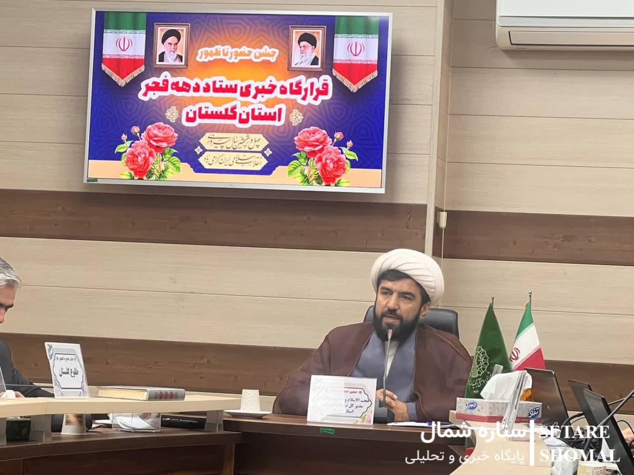 به گزارش پایگاه خبری ستاره شمال، حجت‌الاسلام عباسعلی گرزین صبح امروز در قرارگاه خبری فجر استان گلستان که با شعار محوری «جشن حضور تا ظهور» به مناسبت بزرگداشت چهل و ششمین سالگرد پیروزی انقلاب اسلامی در گرگان در حال برگزاری است، اظهار کرد: ۱۴۰۳ برنامه ۴۶ با عنوان برنامه شاخص در سراسر استان تدارک و اجرا می‌شود.