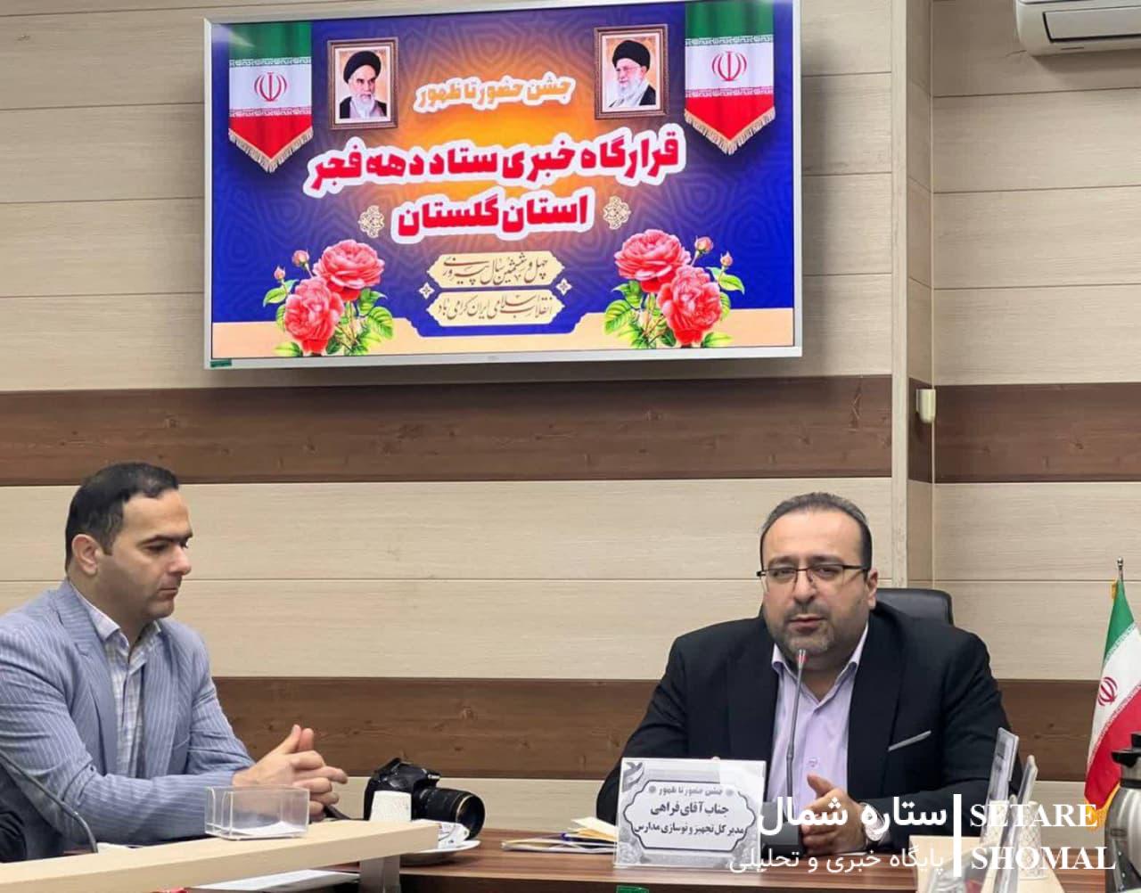 فراهی متذکر شد: ۵۰۰ میلیارد تومان در استان گلستان خیران در امر مدرسهسازی کمک کردند، افزود: در دو سال گذشته نزدیک به ۲۰۰ میلیارد تومان خیران نسبت به مدرسهسازی اقدام کردند، ۳۰۰ مدرسه شامل ۷۵۰ کلاس درس با کمک خیران ساخته شده است و در دو سال گذشته شاهد ساخت ۲۰ مدرسه خیرساز در سطح استان بودیم.