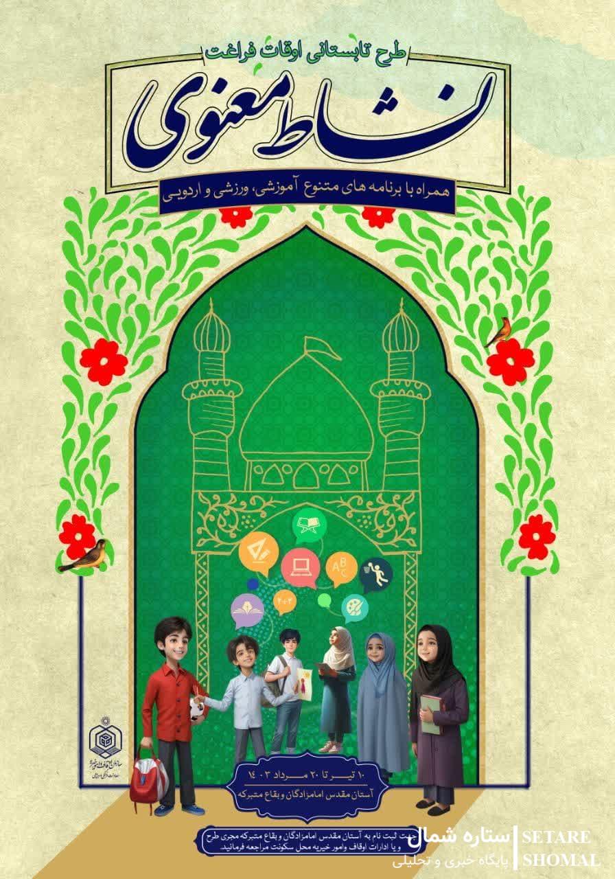 مدیر کل اوقاف و امور خیریه استان گلستان گفت: طرح تابستانی نشاط معنوی ویژه اوقات فراغت نوجوانان و جوانان در بقاع متبرکه استان گلستان برگزار میشود.