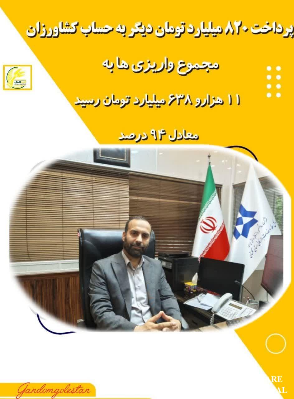 مبلغ ۸۲۵ میلیارد تومان دیگر به حساب گندمکاران استان پرداخت شد که به شرح ذیل میباشد: