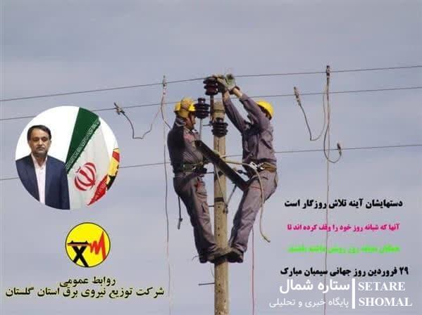سیمبانان سختکوش، قهرمانانی بیادعا هستند که در سختترین شرایط، از اوج گرمای سوزان تا سرمای طاقت فرسا، از وزش بادهای تند تا بارانهای سیلآسا، بیوقفه در خط مقدمِ برقرسانی ایستادهاند. آنها با عزمی راسخ و تلاشی شبانهروزی، روشنایی را به خانههای هموطنان، بهویژه مردمِ شریف استان گلستان، هدیه میکنند و چراغِ توسعه و پیشرفت را در این استان پهناور با شرایط ویژهٔ اقلیمی روشن نگاه میدارند.